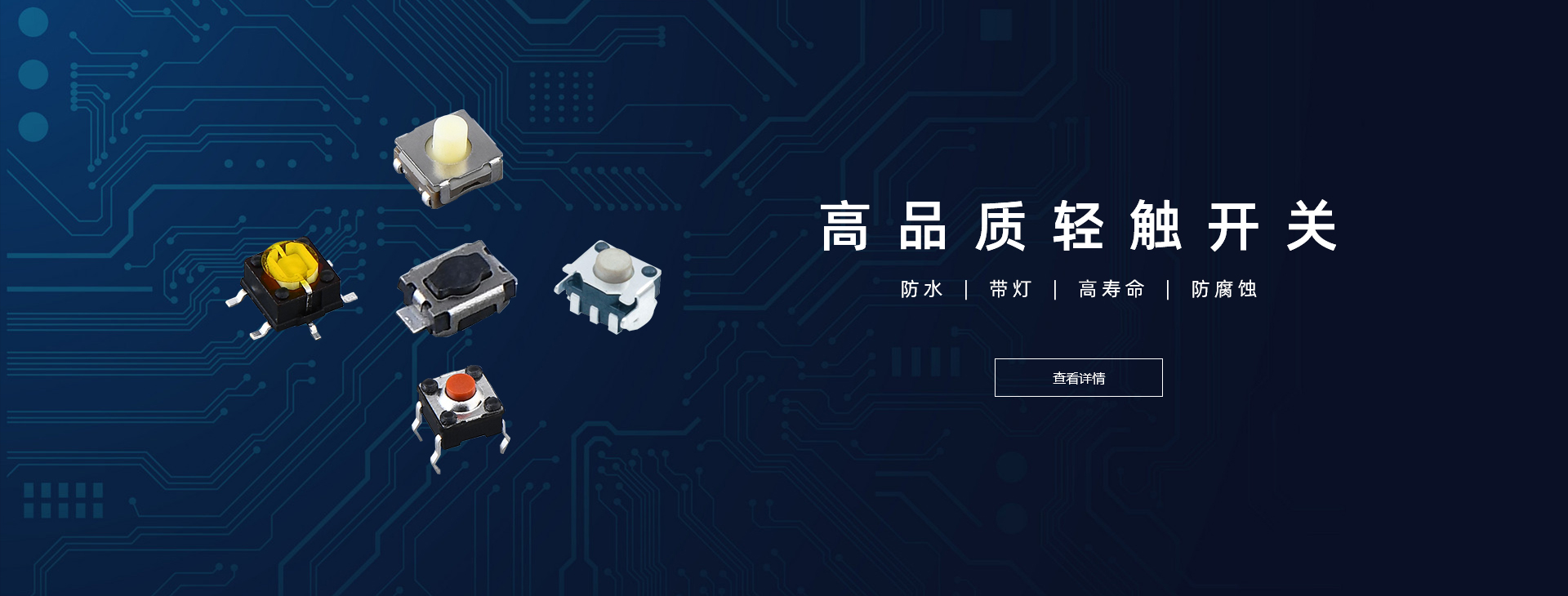 我公司創建于2010年,是集設計、開發、生產、銷售于一體的綜合性生產型企業,主要生產各種帶燈輕觸開關、防水輕觸開關、自無鎖開關、五向開關、撥動開關等系列產品。
